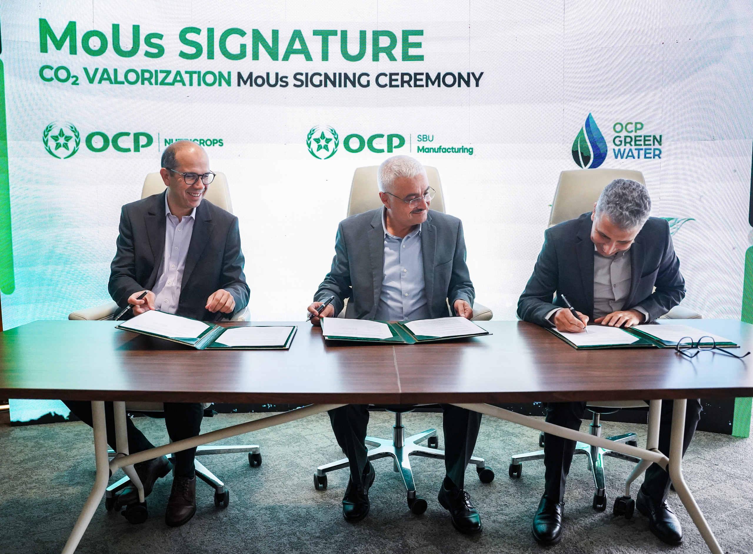 Casablanca, 17 September 2025 – OCP Nutricrops, OCP Green Water and INNOVX signed two landmark Memorandums of Understanding (MoUs) to advance industrial-scale valorization of captured CO₂ at the Jorf Lasfar industrial platform, the world’s largest integrated complex for the production of phosphate fertilizer, transforming it into solutions for sustainable water and agriculture. These agreements lay the foundation for long-term collaboration, positioning CO₂ as a strategic enabler across multiple high-growth sectors, from securing water supplies to advancing agriculture and industrial innovation.